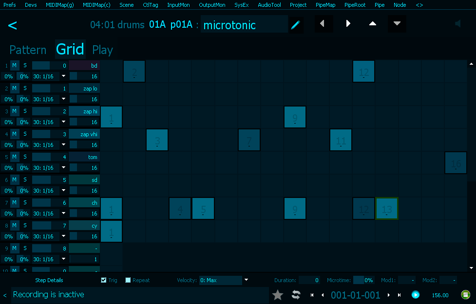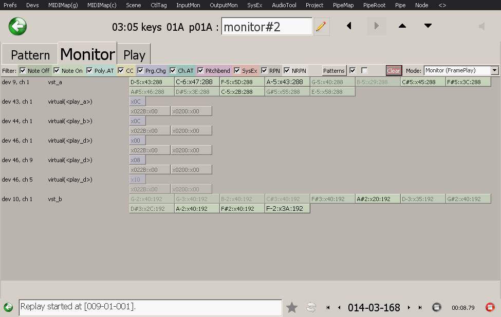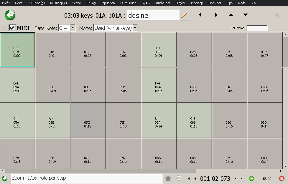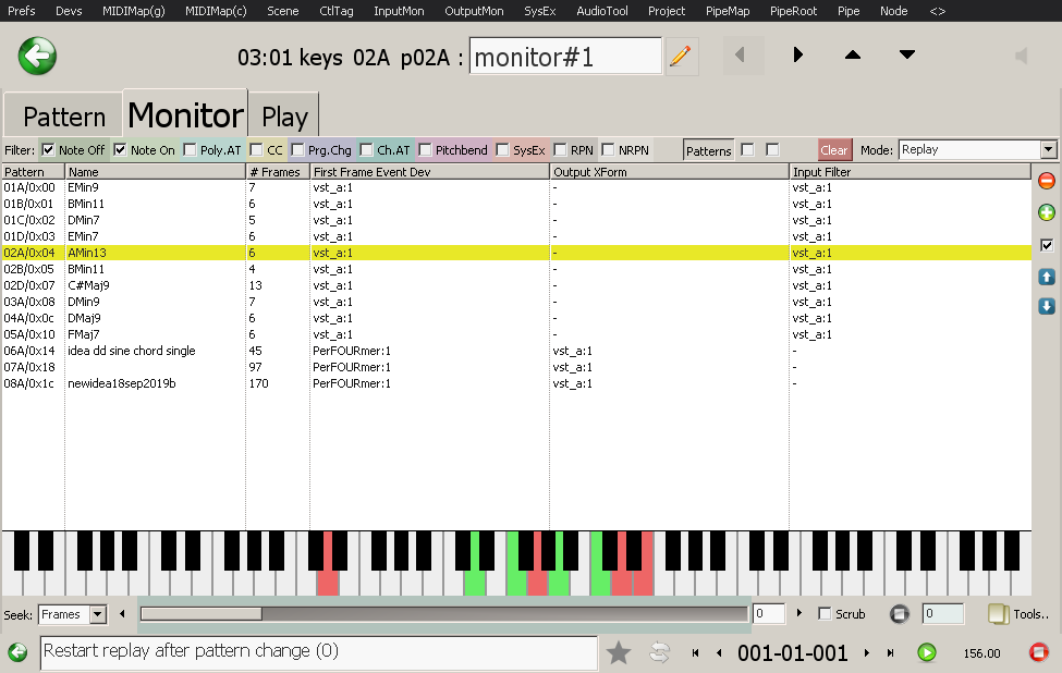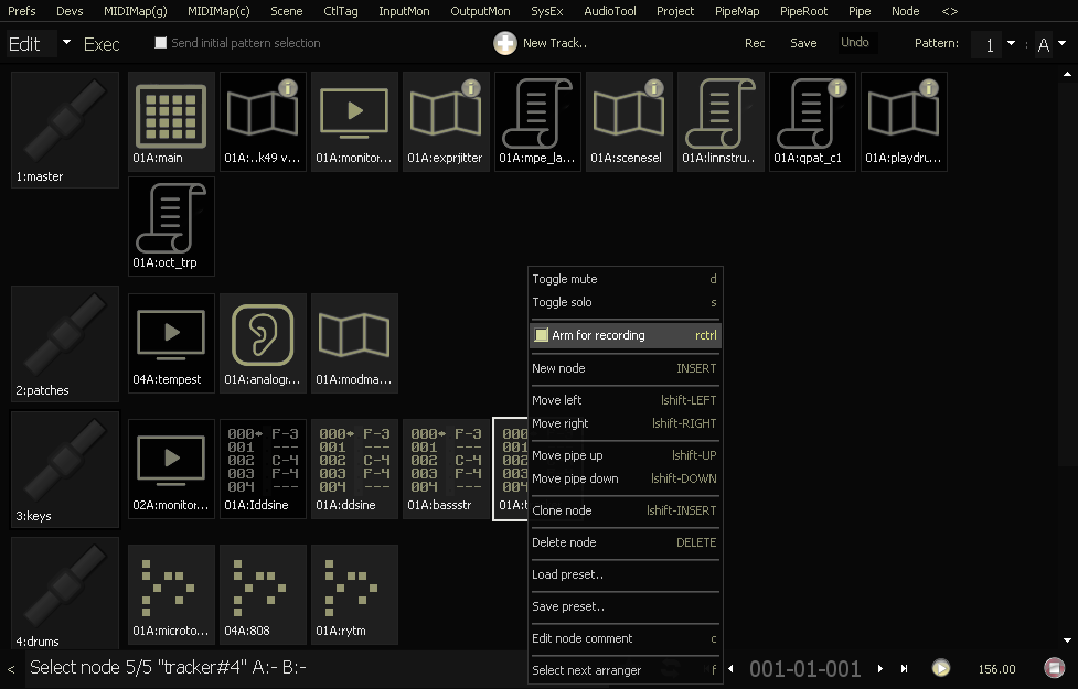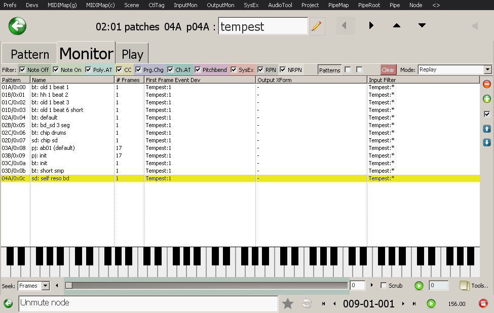 - freeform monitor and piano roll sequencer nodes for recording and playing back arbitrary MIDI data, including SysEx dumps