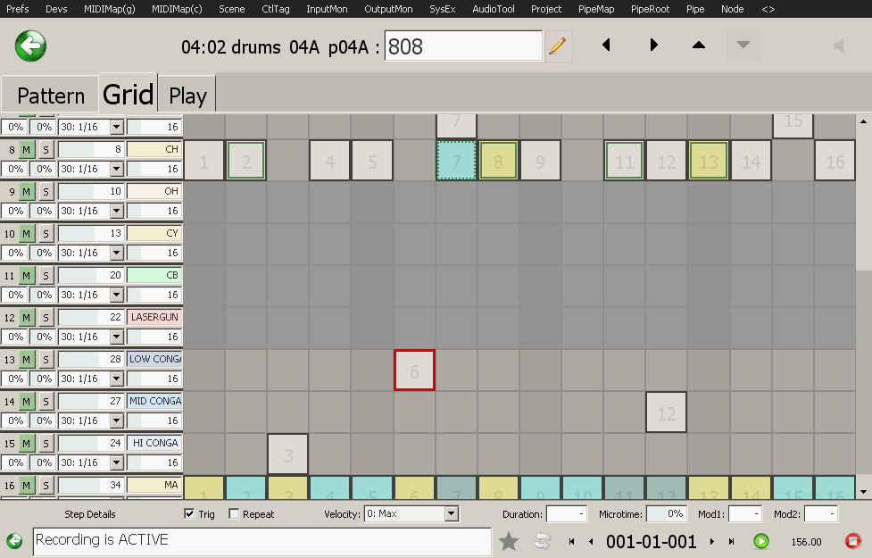 - multi-node and multi-pattern-sequence recording with configurable precount and undo