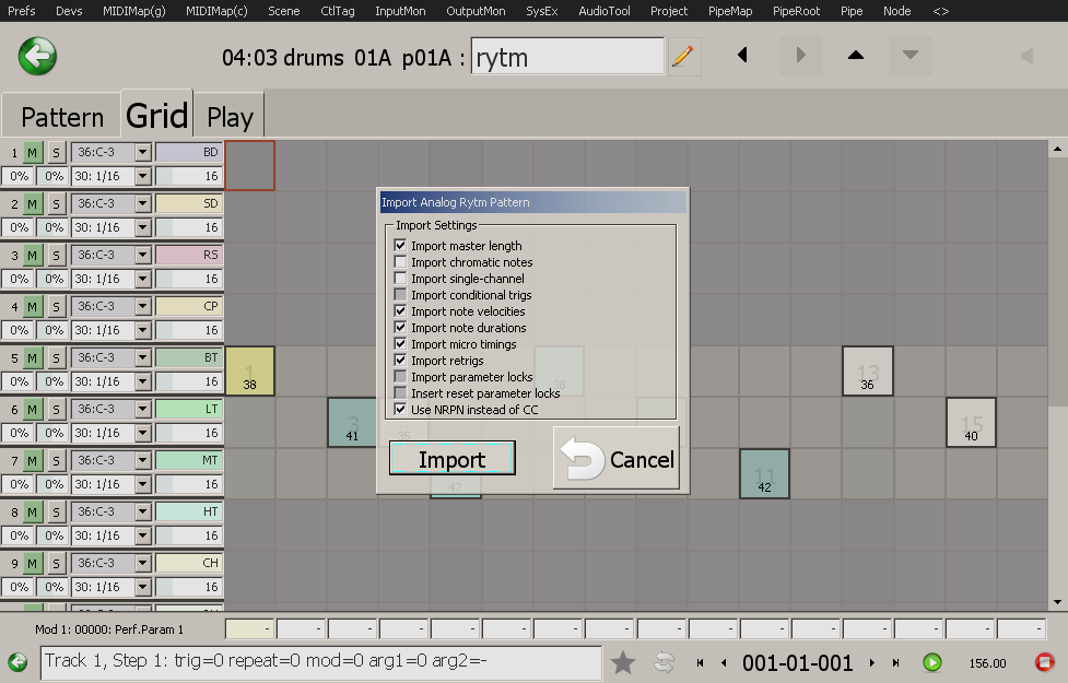 - import of Analog Rytm drum computer patterns (tracker + step sequencer)