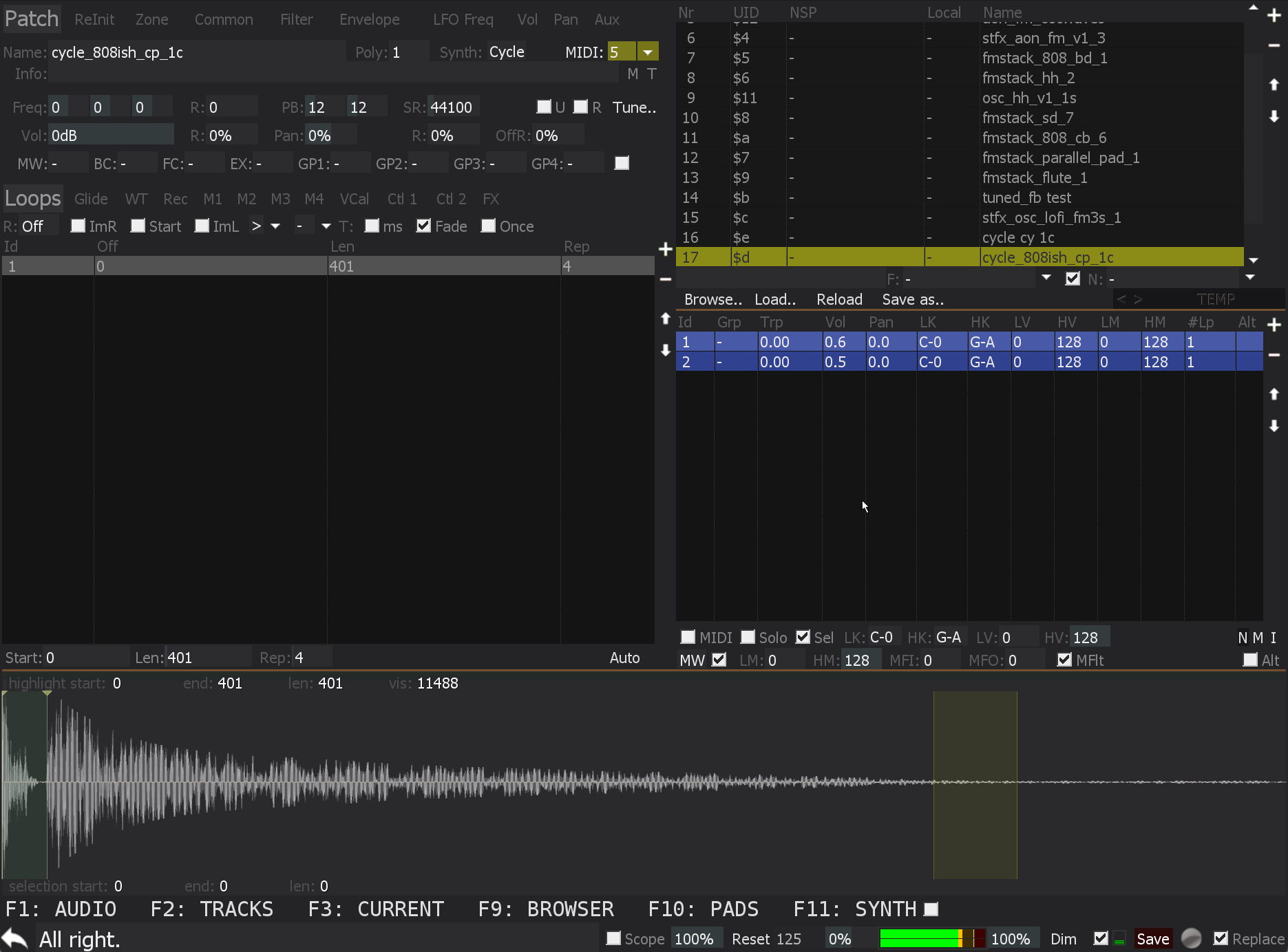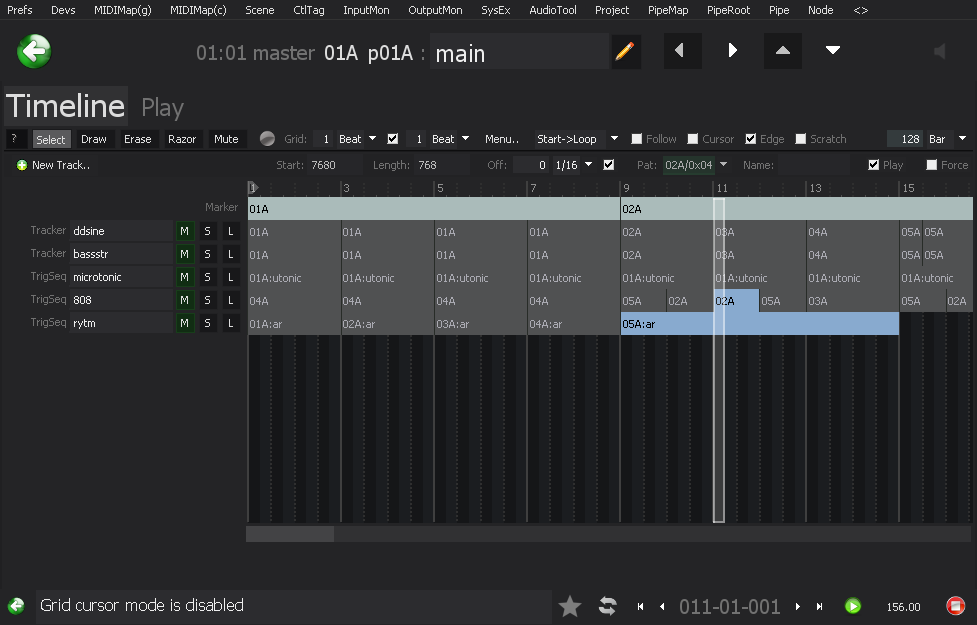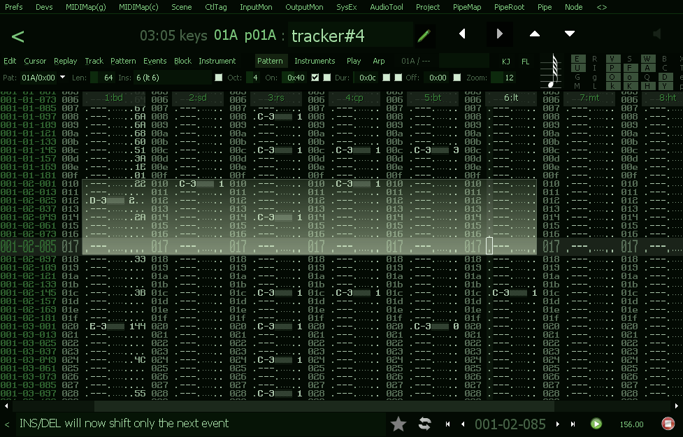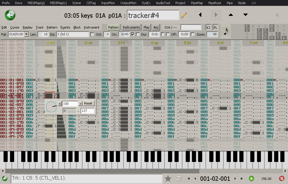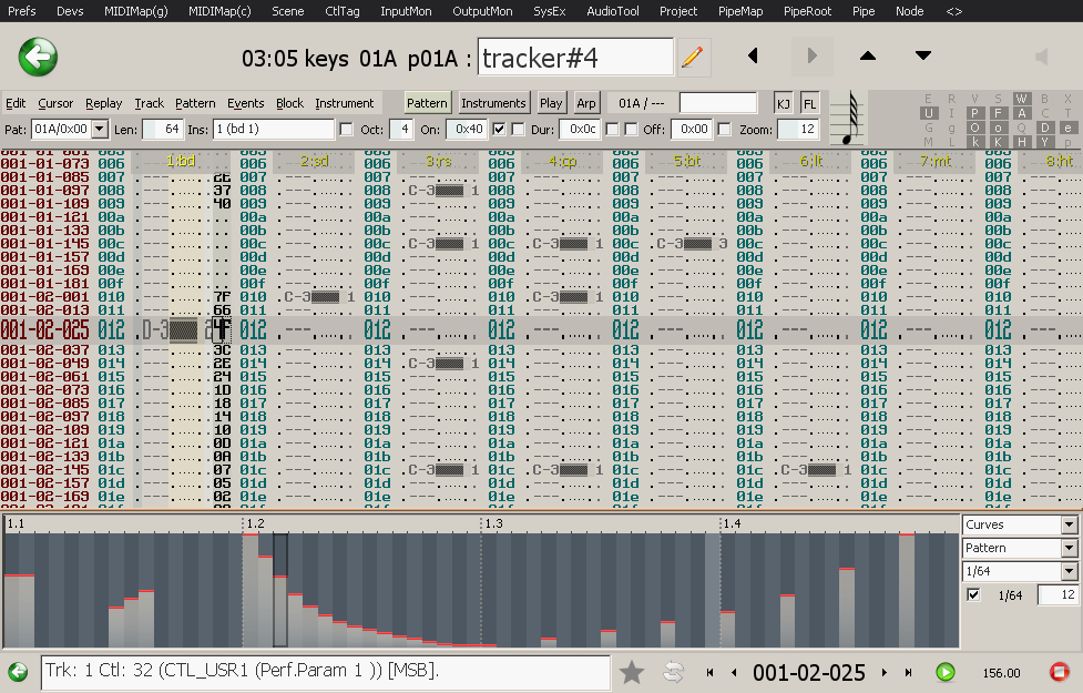 - a Tracker sequencer with microtiming, zoomable patterns, customizable columns, (N)RPN and 14bit CCs, graphical envelopes, undo, ..